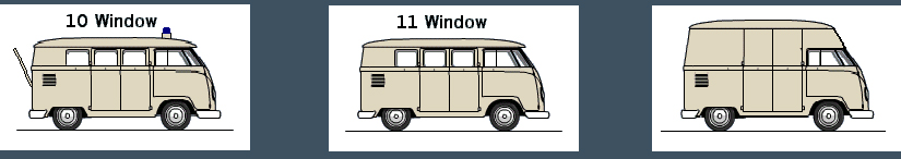 11 Window = Standard Microbus (22) or (28) & Kombi (23).
