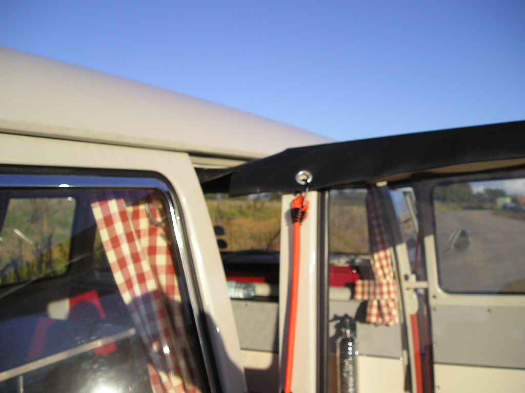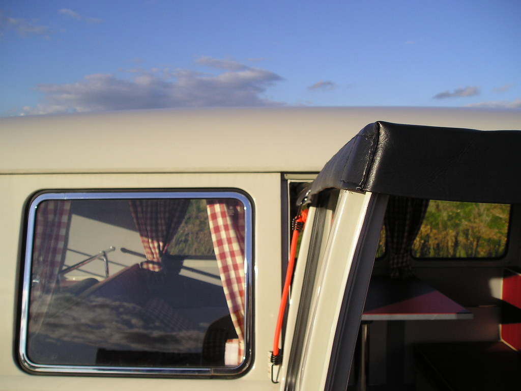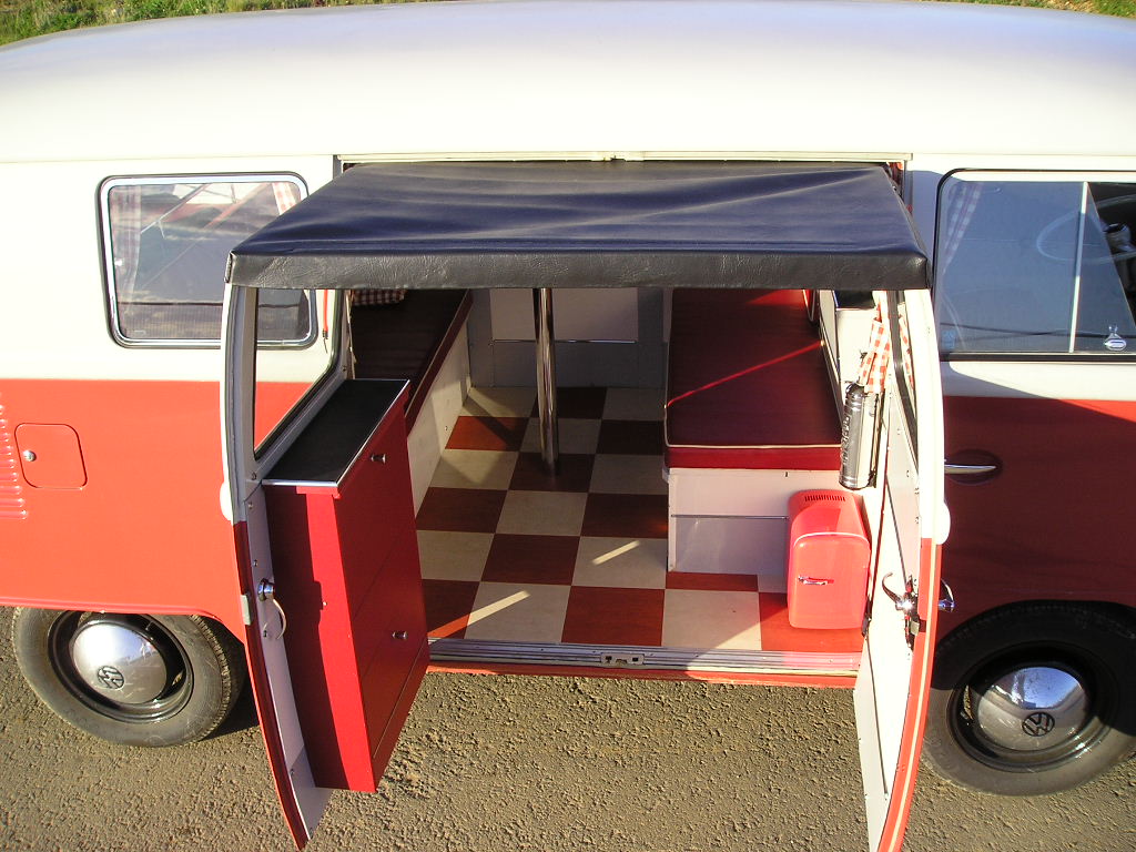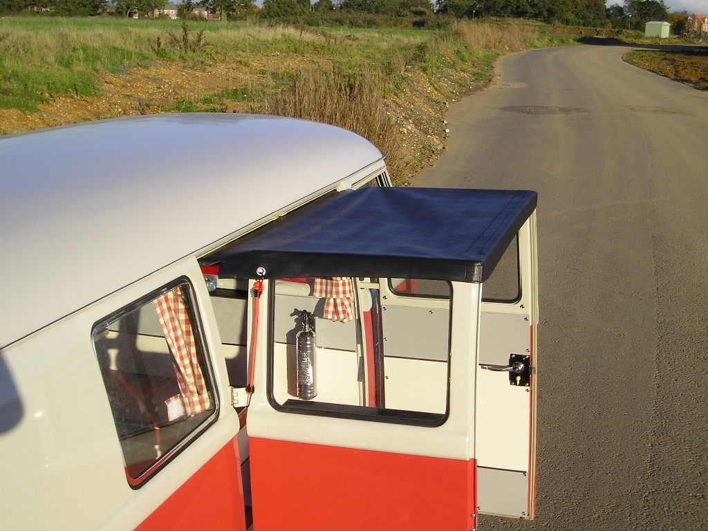 The day awning fitted to the bus, its a one-piece kit that takes about 2 minutes to fit. Perfect for keeping in the shade or hiding from the