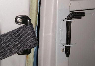 The check strap stops the cargo door blowing open in the wind, which could possibly damaging the vehicle.